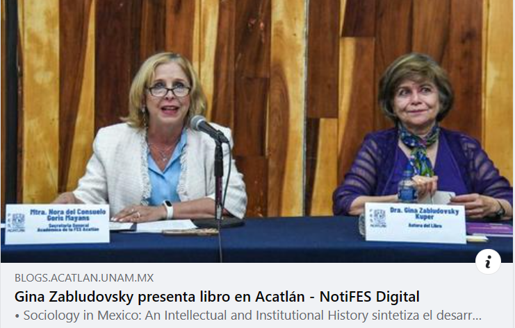 Les comparto la Nota por la FES-Acatlán sobre la presentación del libro Sociology in Mexico: An Intellectual and Institutional History, por la Dra. Gina Zabludovsky presentado el 21 de marzo.