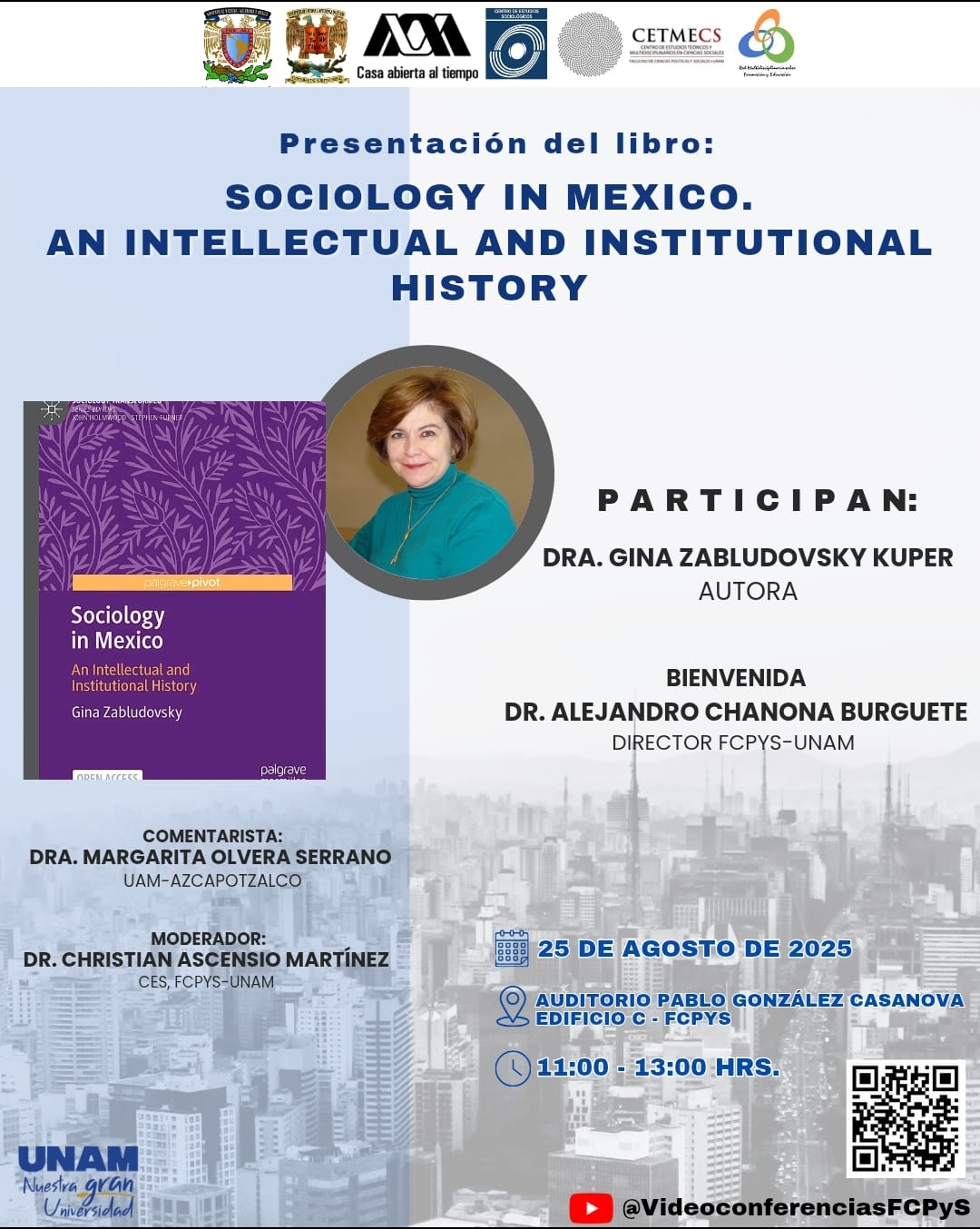 El 25 de agosto a las 11:00 hrs, estaré presentando mi libro: Sociology in Mexico an Intellectual and Institutional History en el auditorio Pablo Gonzalez Casanova, edificio «C» de la FCPyS de la UNAM.