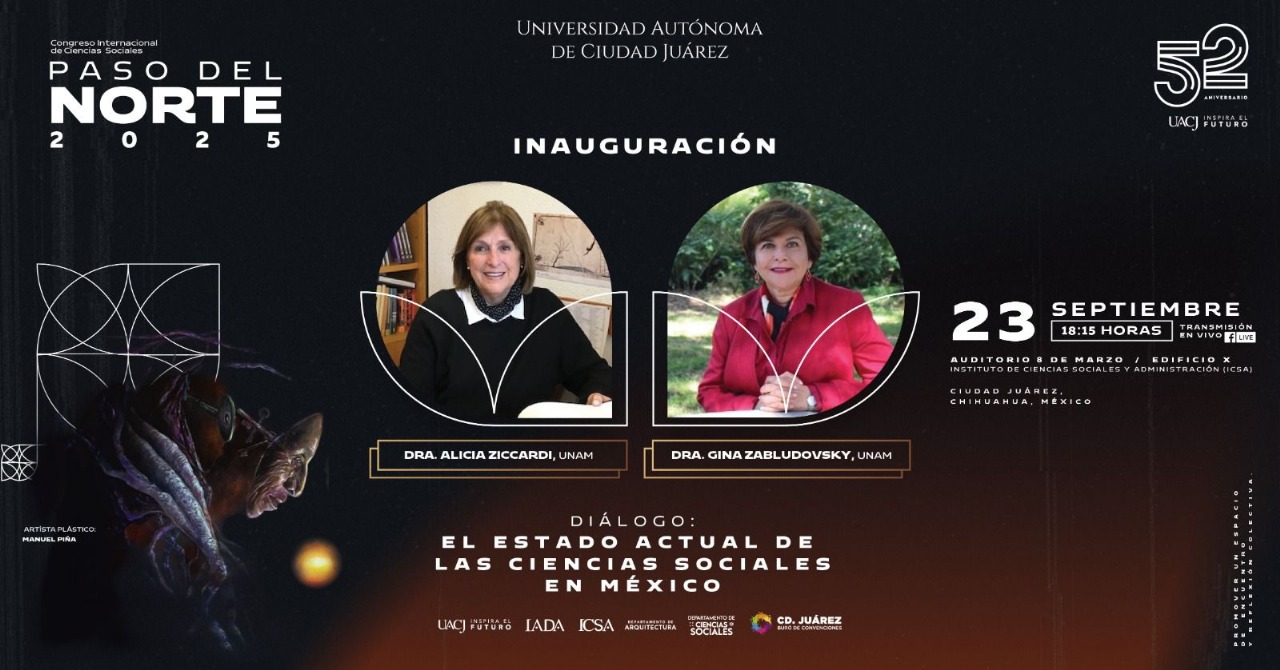 El día 23 de septiembre a las 16:15 hrs, estaremos inaugurando el Congreso Internacional de Ciencias Sociales Paso del Norte con la conferencia magistral : Diálogo El estado actual de las ciencias sociales en México.